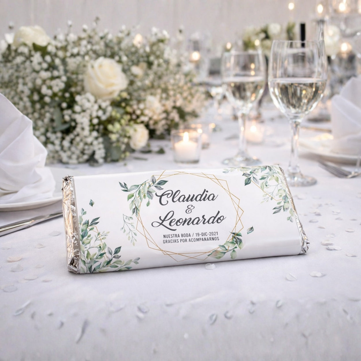 BARRAS DE CHOCOLATE PERSONALIZADAS DISEÑO #7741 HOJAS VERDES BODAS