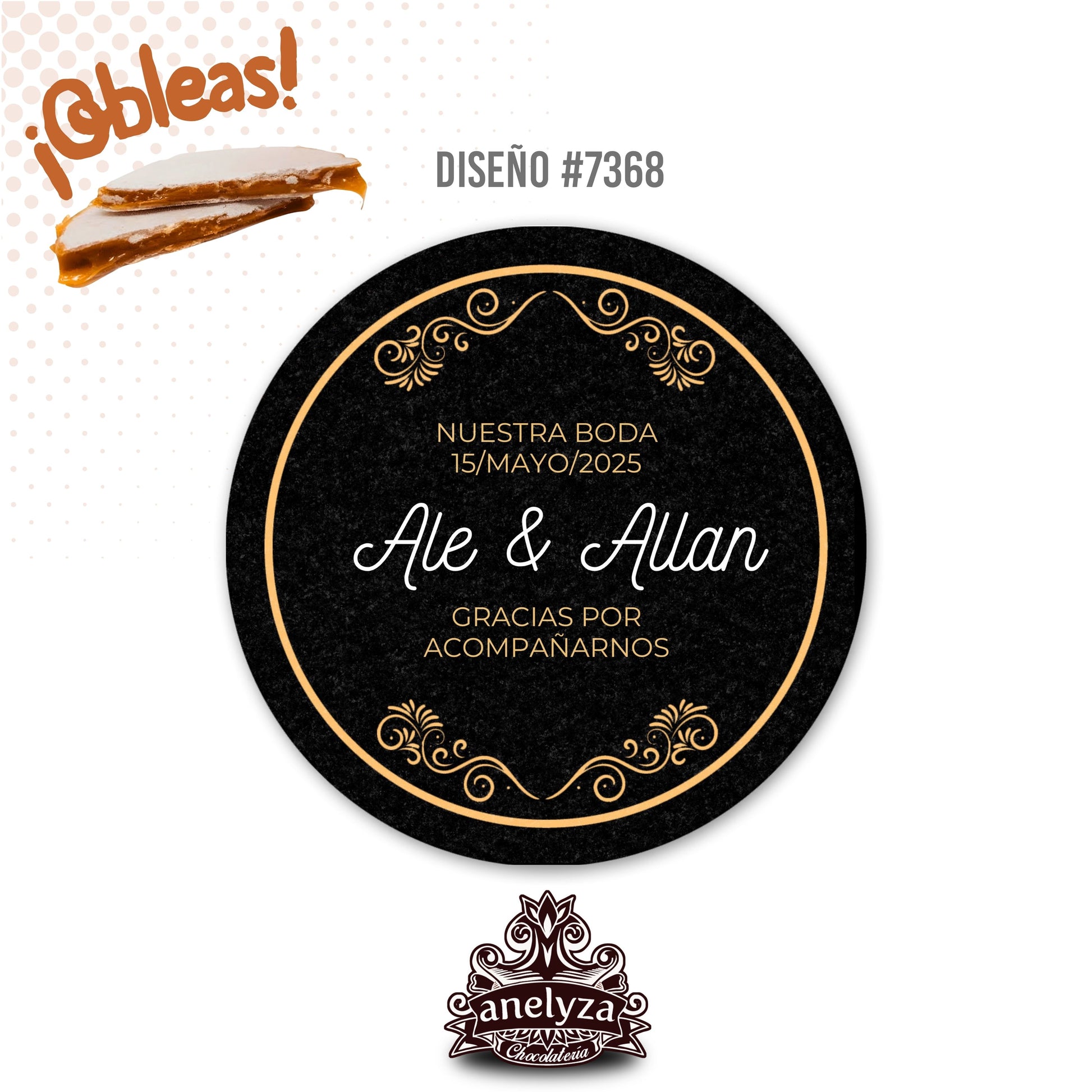 OBLEAS RELLENAS PERSONALIZADAS DISEÑO #7368 FONDO NEGRO CON DORADO BODAS