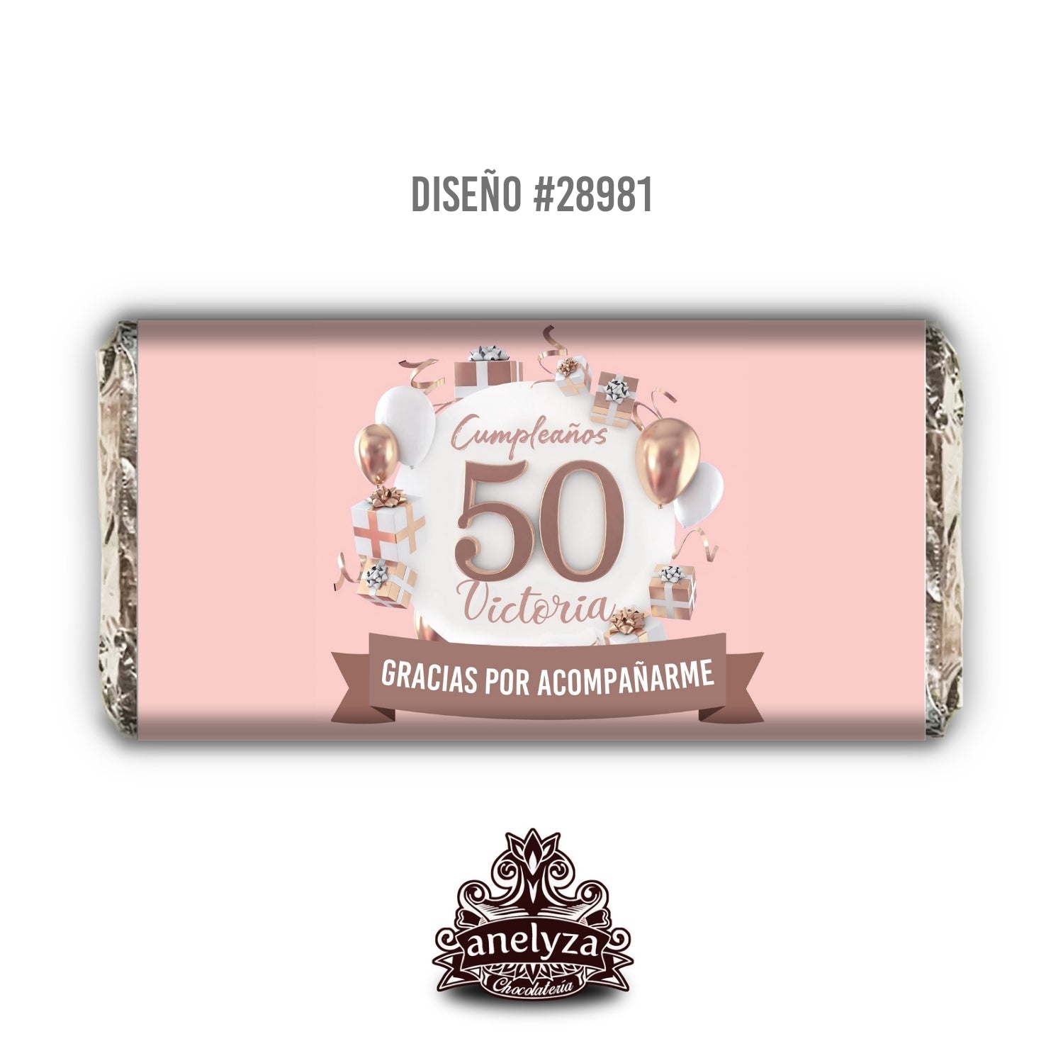 BARRAS DE CHOCOLATE PERSONALIZADAS DISEÑO #28981 FONDO ROSA CUMPLEAÑOS MUJER