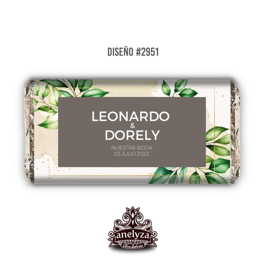 BARRAS DE CHOCOLATE PERSONALIZADAS DISEÑO #2951 HOJAS VERDES BODAS