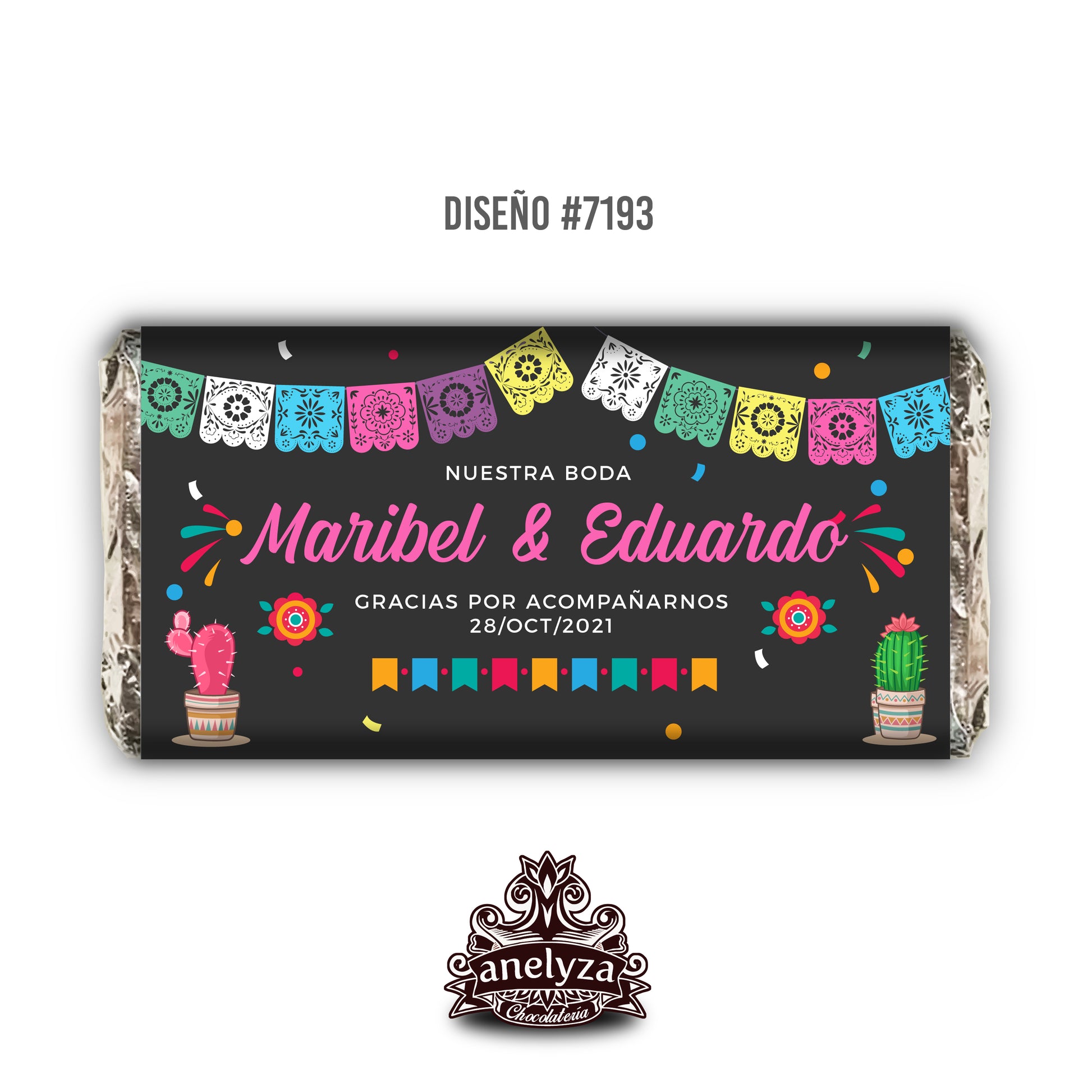 BARRAS DE CHOCOLATE PERSONALIZADAS DISEÑO #7193 DISEÑO MEXICANO BODAS