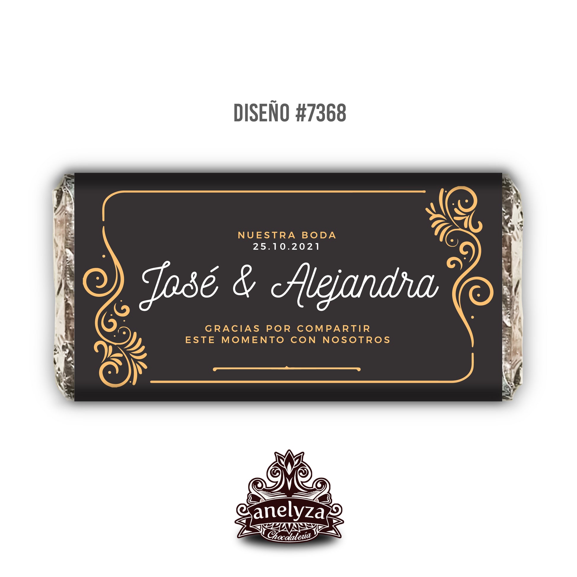 BARRAS DE CHOCOLATE PERSONALIZADAS DISEÑO #7368 FONDO NEGRO CON DORADO BODAS
