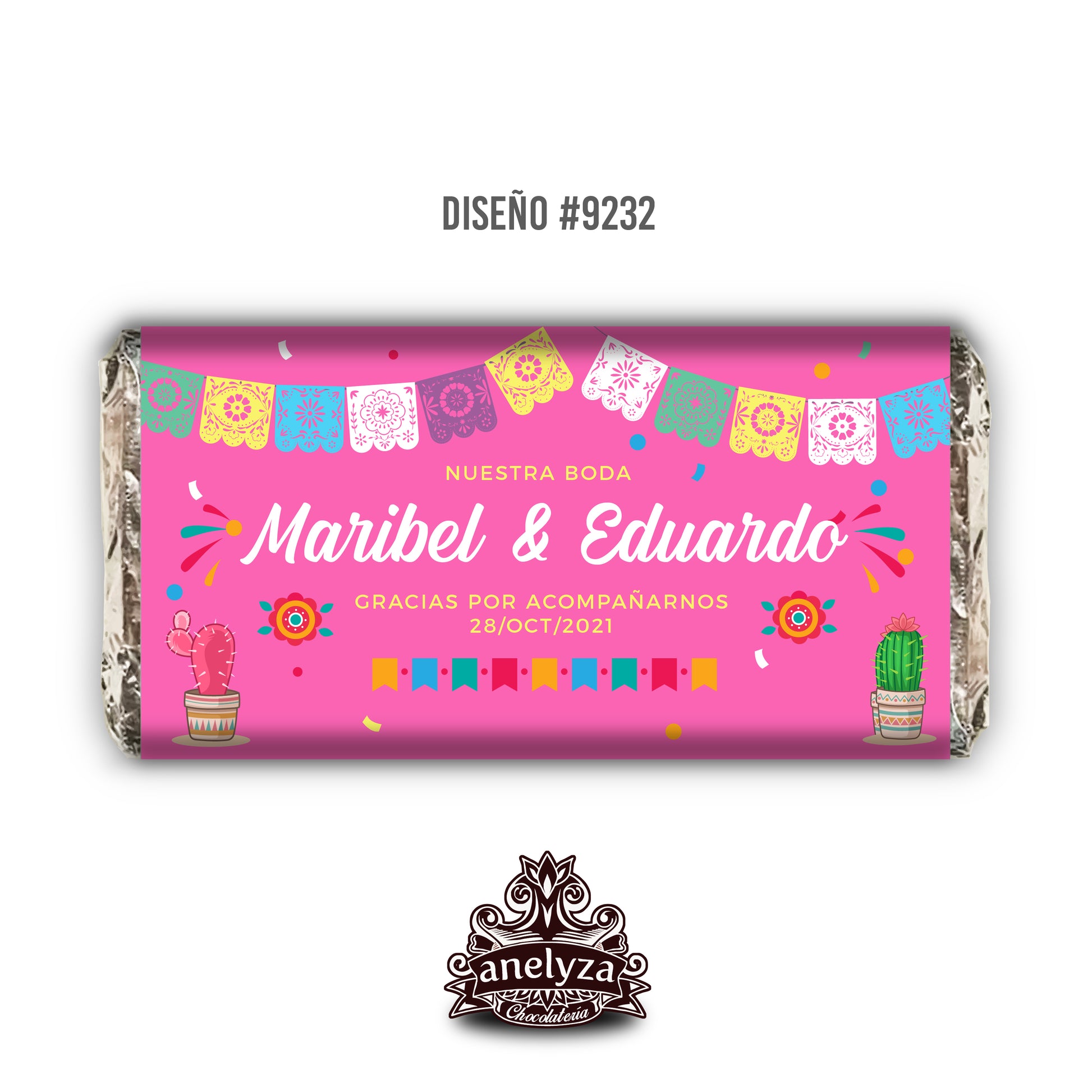 BARRAS DE CHOCOLATE PERSONALIZADAS DISEÑO #9232 DISEÑO MEXICANO BODAS