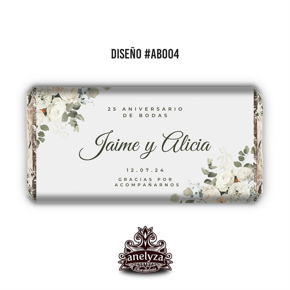 BARRAS DE CHOCOLATE PERSONALIZADAS DISEÑO #AB004 ANIVERSARIO DE BODAS