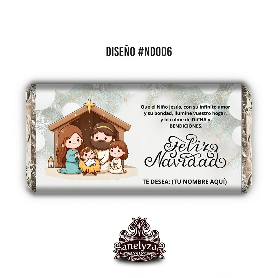 BARRAS DE CHOCOLATE PERSONALIZADAS DISEÑO #ND06 NIÑO DIOS NIÑO JESUS FELIZ NAVIDAD