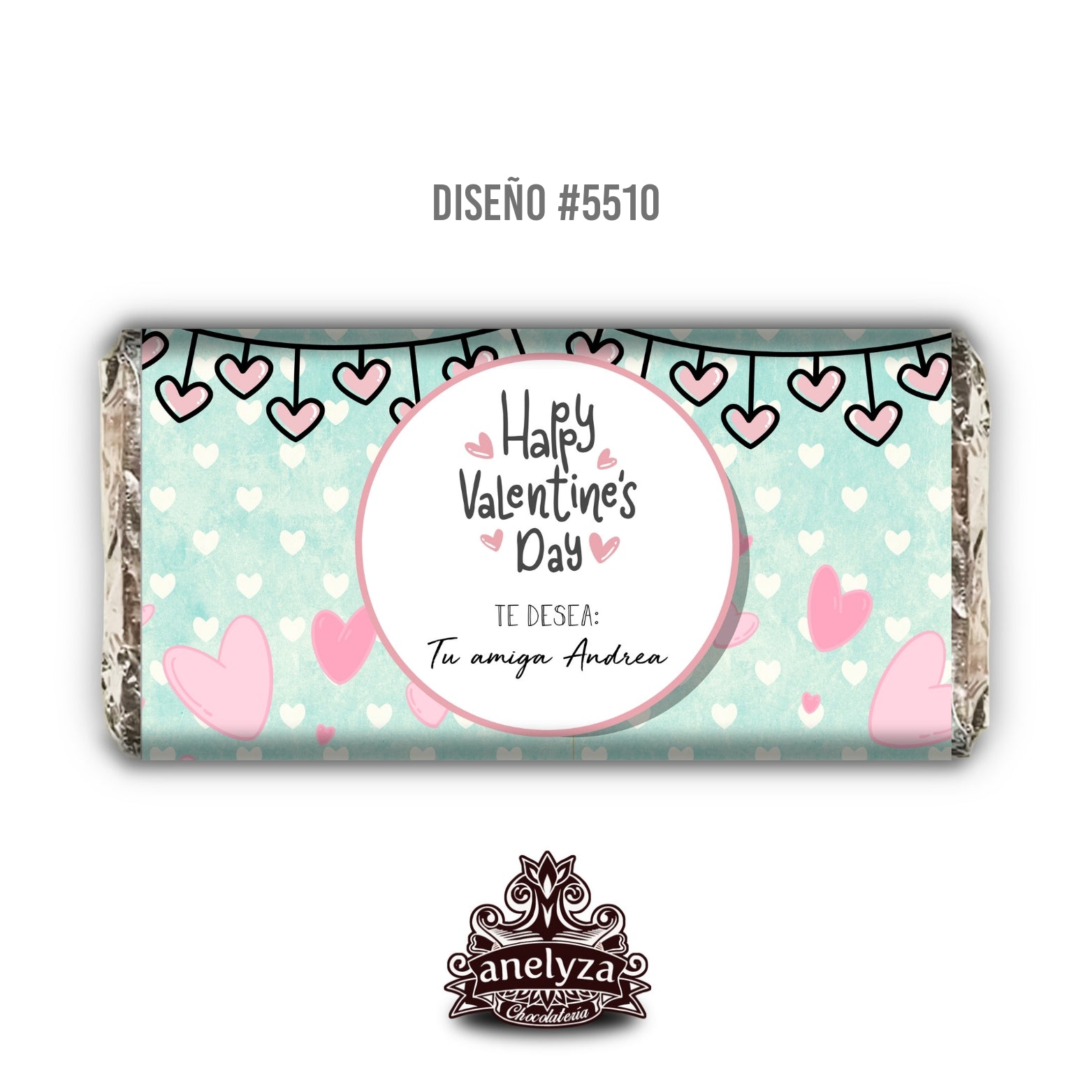 BARRAS DE CHOCOLATE PERSONALIZADAS DISEÑO #5510 SAN VALENTIN DIA DEL AMOR Y LA AMISTAD FONDO AZUL